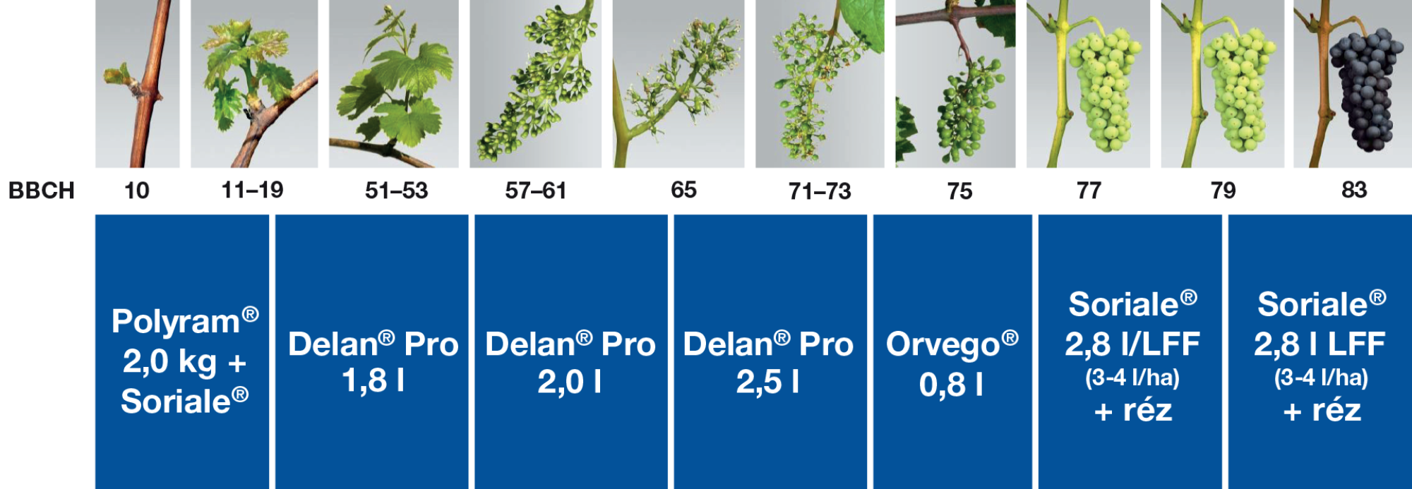 A Delan® Pro-ból már jól ismert foszforossav garantálja a peronoszpóra elleni kimagasló hatékonyságot a szőlővédelmi szezon folyamán a frissen növekvő zöld részeken és bogyókon. A Delan® Pro 42 napos élelmezés-egészségügyi várakozási ideje azonban már nem teszi lehetővé, hogy erre a kimagasló hatékonyságú készítményre alapozzuk a peronoszpóra elleni védekezést a zárópermetezéskor. A bogyók ekkor már elvesztik érzékenységüket a peronoszpórával szemben, de a levél egészen lombhullásig könnyen meg tud betegedni.